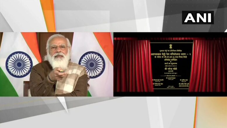 दिल्ली: प्रधान मंत्री नरेंद्र मोदी वीडियो कॉन्फ्रेंसिंग के माध्यम से अहमदाबाद मेट्रो रेल परियोजना चरण-II और सूरत मेट्रो रेल परियोजना की ‘भूमि पूजन’ किया।